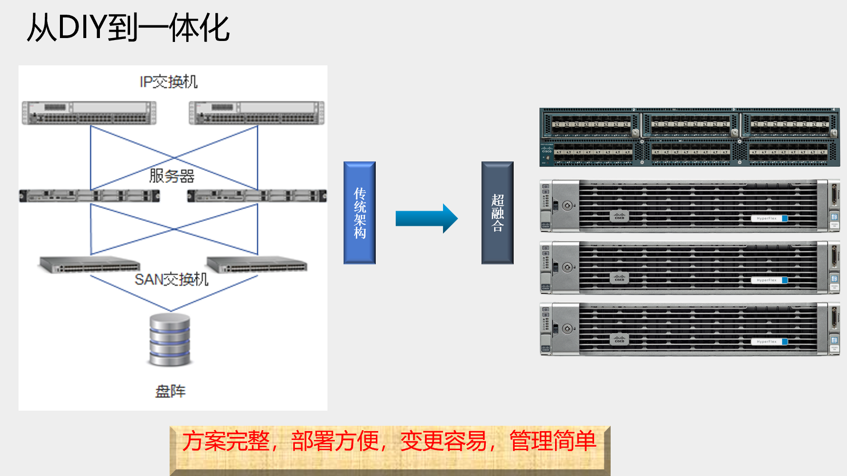 思科的HyperFlex可以和标準的X86服務(wù)器(q音長ì)、SAN存儲組成全融合。
